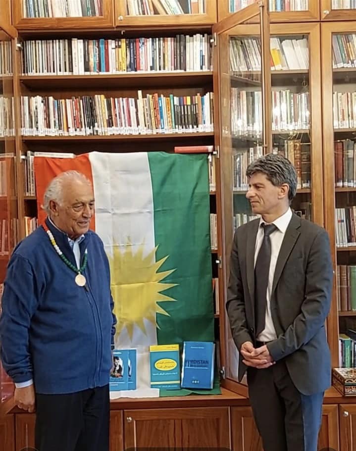 هونەرمەندی نێوداری کورد و بەرێوەبەری ئینستیتیوتی کەلەپووری کورد مامۆستا (مەزهەری خالقی) لەگەڵ هونەرمەندی هێژا (رێژەن حەسەن)